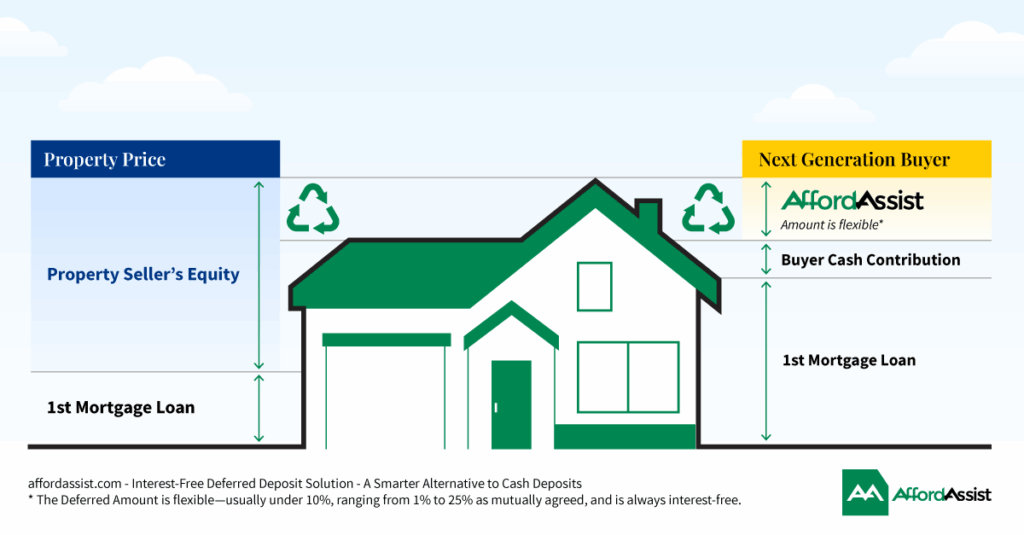 AffordAssist help with the first home buyer deposit. Replace the need for the typical cash deposit with our innovative deferred deposit solution. AffordAssist is your new way to buy your first home today, defer and pay the deposit later.